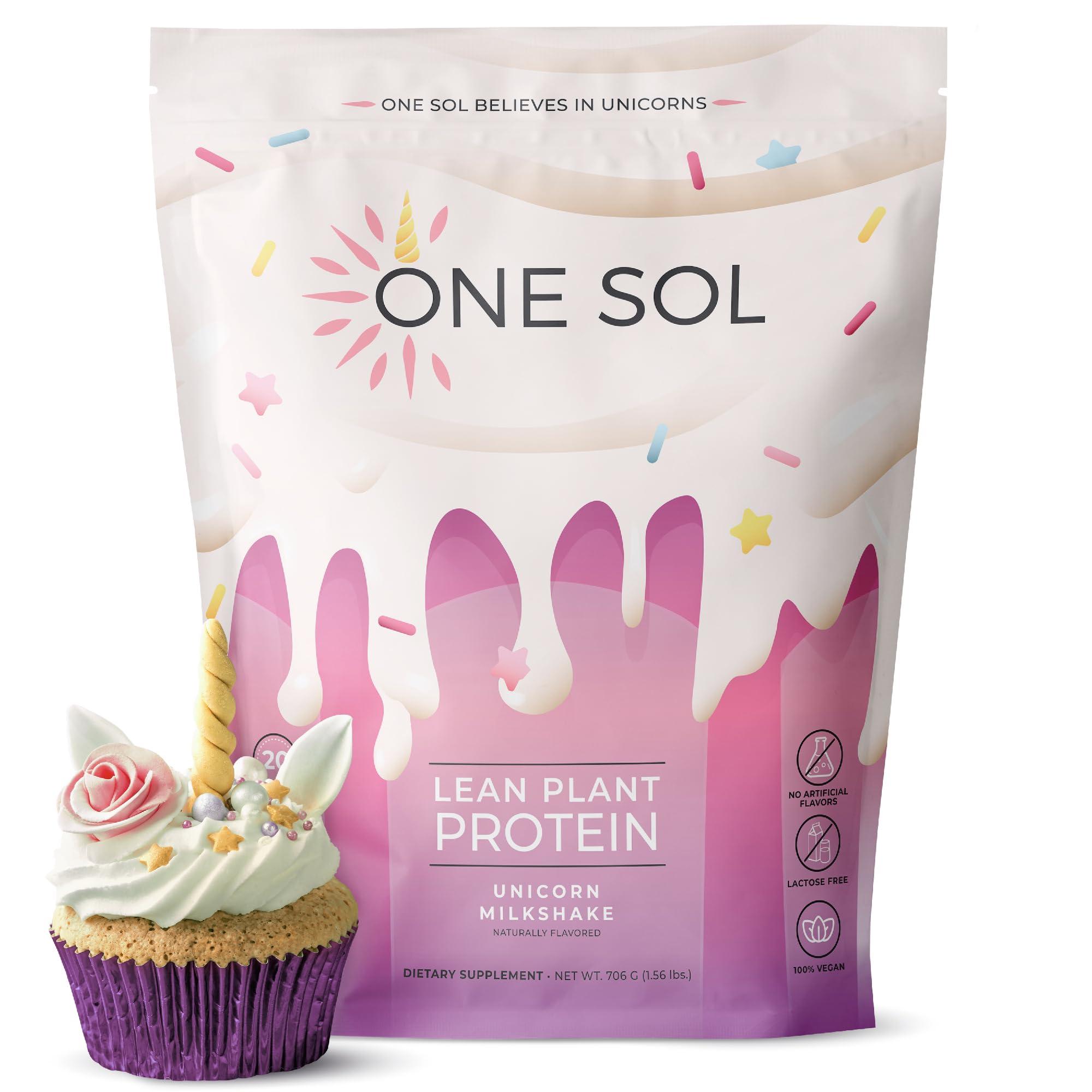 One Sol Protein Powder, Lean & Low Carb, No Bloating, Gluten Free, Lactose-Free, No Sugar Added, Soy Free, Non-GMO, 100% Plant-Based & Vegan Friendly (Unicorn Milkshake)