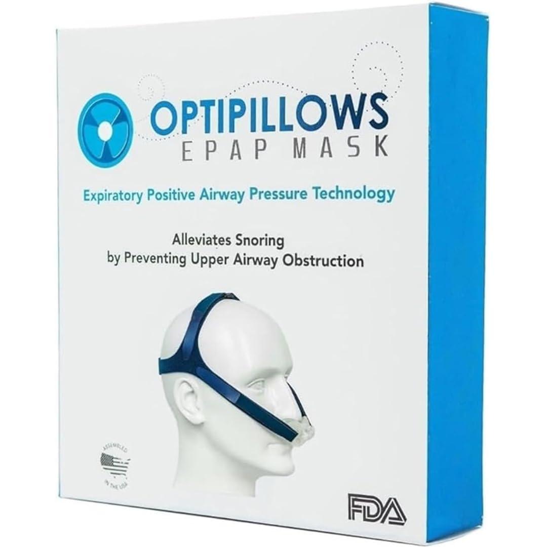 - Optipillows EPAP Mask for Snoring Features and Benefits: Unique Alternative to CPAP Therapy Ready for Travel and Approved by FAA for In-Flight Use Eliminates Snoring and Reduces Sleep Therapy Noise Long-Lasting Performance: Use Up to One Year