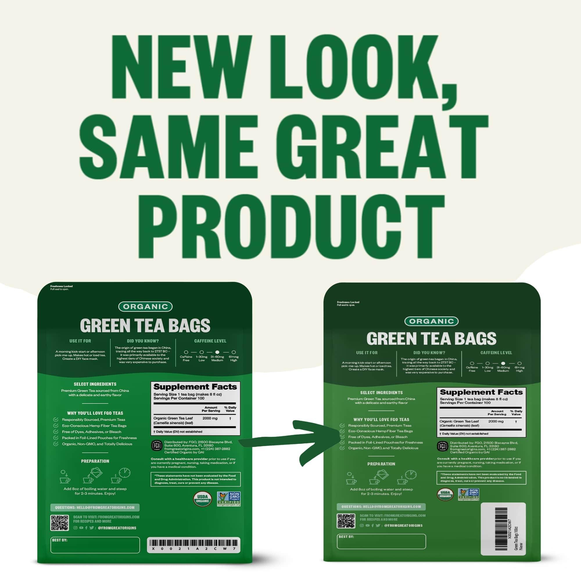 - ORGANIC GREEN TEA - The tea is blended, filled into tea bags and packed into foil-lined kraft bags in California