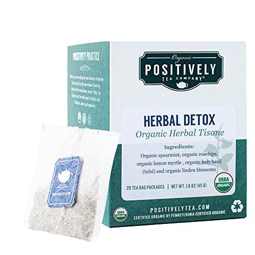 Our organic Herbal Detox tea is a delicious and cleansing blend of organic Holy basil (tulsi), organic spearmint, organic rosehips, organic lemon myrtle and organic linden blossoms. This all natural loose leaf herbal tea blend is comprised of herbs to help purify and support the body. Here at Positively Tea, were curating the worlds most positive tea experience. We believe that high-quality tea products promote overall health and well-being. Tea is meant to be enjoyed, and the process, brewing either loose leaf or bagged tea, should be as health conscious as possible. Were proud to offer exclusively bleach and glue-free tea bags so that every Positively Tea customer can enjoy the natural flavors and benefits without the use of toxic glues and chemicals. Our entire product line is USDA certified organic and sourced with the utmost care so you always arrive at an outstanding cup of tea.