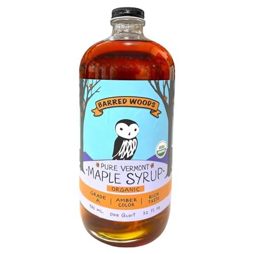 Grade A Pure Organic Vermont Maple Syrup. Perfect with your pancakes, oatmeal, yogurt, cocktails and much more. Best Tasting 100% Pure Vermont Maple Syrup produced in small batches with utmost attention to quality and purity.Nothing added, all natural. We manage our sugar maple forest for sustainability and conservation. Many of our trees are over 100 years old and we want to ensure they'll be around for another 100! Thank You for your purchase. Make Wise Choices, Buy Barred Woods Maple Products !