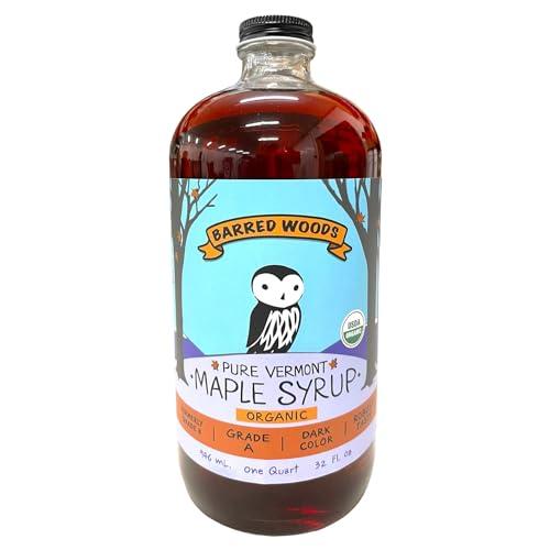 Grade A Pure Organic Vermont Maple Syrup. Perfect with your pancakes, oatmeal, yogurt, cocktails and much more. Best Tasting 100% Pure Vermont Maple Syrup produced in small batches with utmost attention to quality and purity.Nothing added, all natural. We manage our sugar maple forest for sustainability and conservation. Many of our trees are over 100 years old and we want to ensure they'll be around for another 100! Thank You for your purchase. Make Wise Choices, Buy Barred Woods Maple Products !