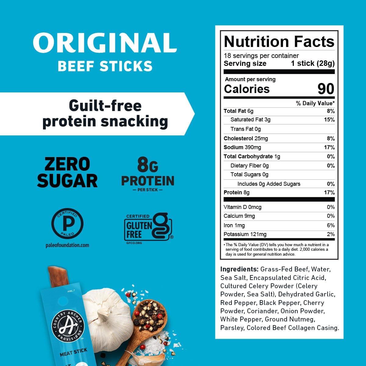 - HEALTHY SNACK - Country Archer zero sugar beef jerky sticks are compliant with Paleo, Keto, Gluten-Free & Carnivore diets. We sell our meat sticks individually wrapped for a convenient on-the-go snack