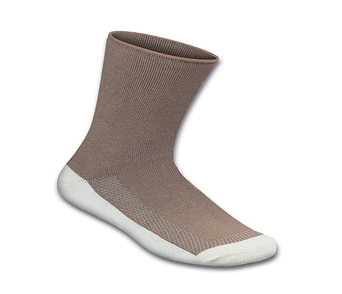 BioSoft(TM) Extra Roomy socks for women and men by Orthofeet feature non-constrictive, seam-free design, excellent moisture wicking system, and soft cushioning interior that offer unsurpassed comfort and protection for sensitive feet and for those with circulatory problems and edema. FIT: Designed for shoes with extra room, and normally dont fit dress shoes. SIZES: SMALL SOCKS: fit women's sizes 4 7; MEDIUM SOCKS: fit women's sizes 7.5 - 10 and men's sizes 6 - 8.5; LARGE SOCKS: fit women's sizes 10.5 - 13 and men's sizes 9 - 11.5; EXTRA LARGE SOCKS: fit men's sizes 12 15; WASHING: Machine wash, warm like colors, tumble dry low. Do not use fabric softeners or chlorine bleach.