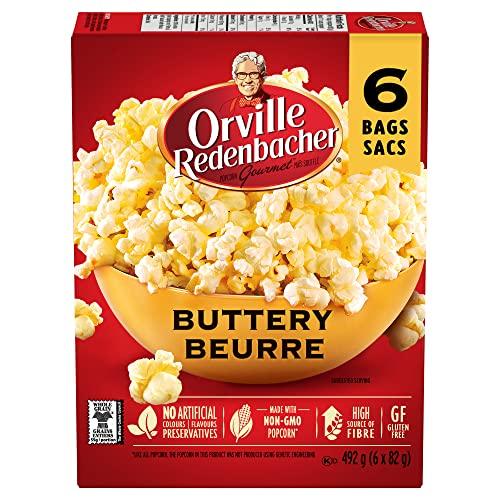 Orville Redenbacher microwave popcorn contains No Artificial Colours, Flavours or Preservatives, Made with 100% Whole Grain Non-GMO Popcorn, High in Fibre, and Gluten Free.