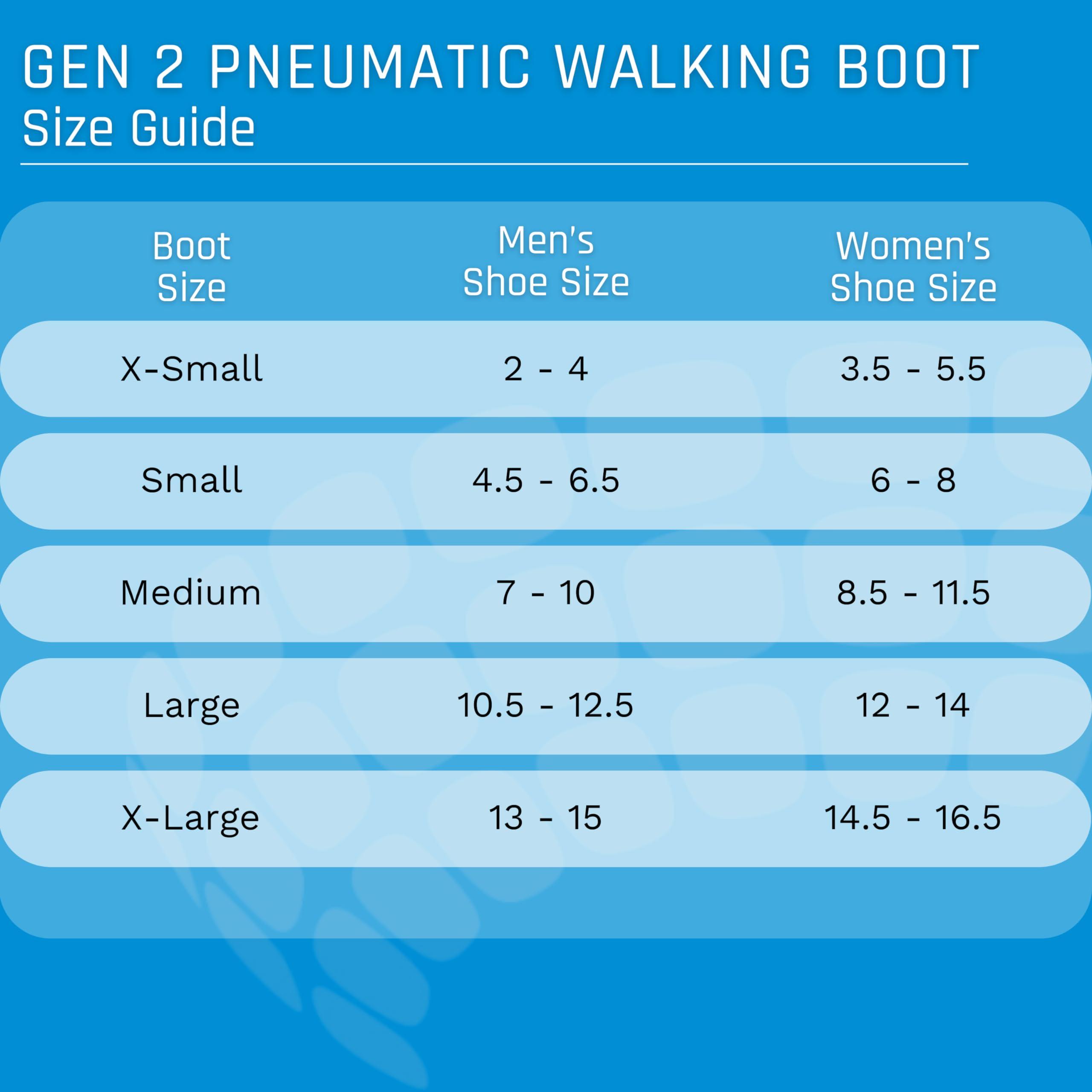 - INNOVATIVE PNEUMATIC PUMP: Traditional orthopedic boots and air casts have easily breakable, outdated twist valve designs or pumps attached to the top strap that can lead them to inflate on their own, causing discomfort. The Gen 2's integrated single push-button release system is simple, durable, and dependable.