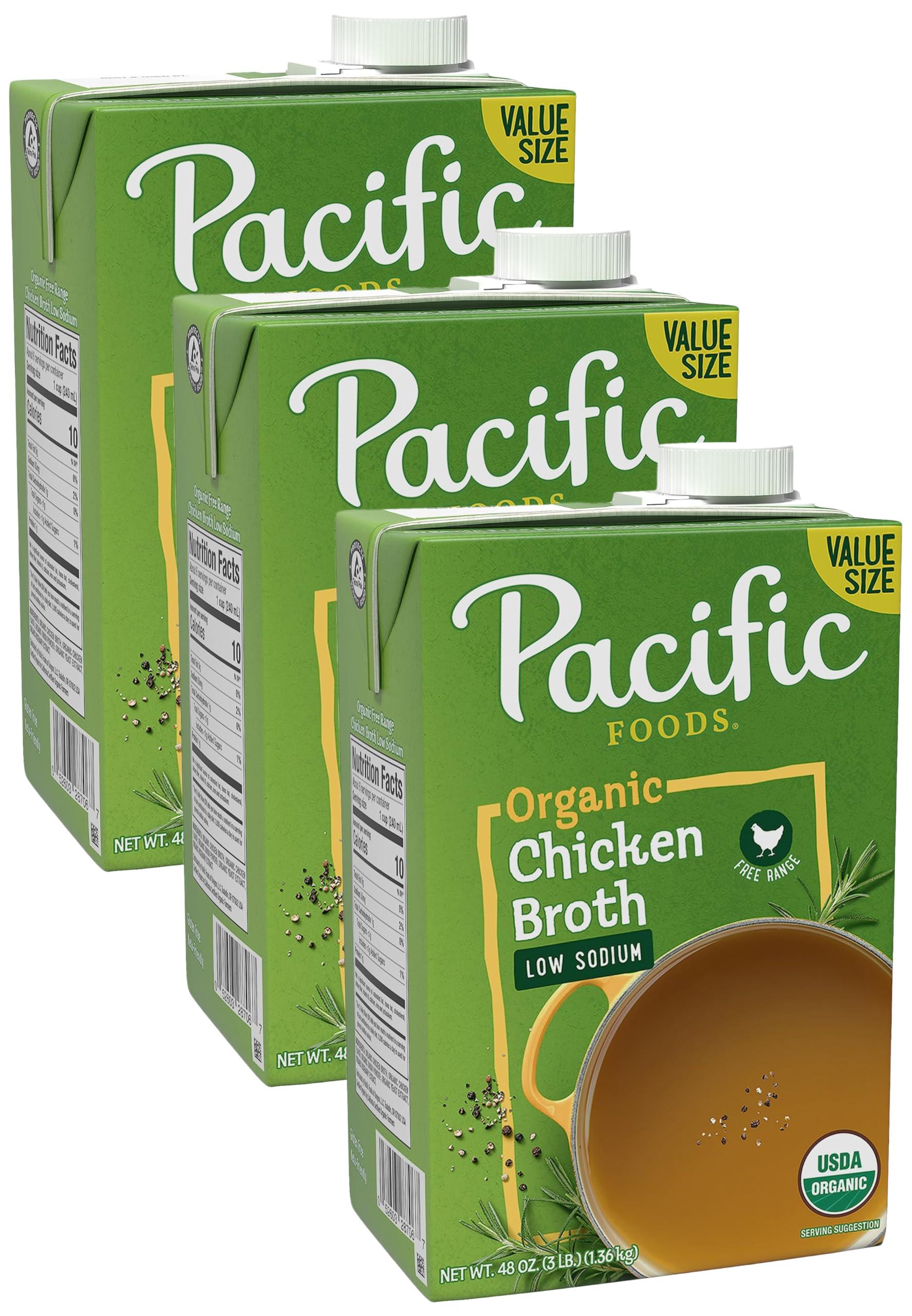 Experience layers of nourishing flavor with Pacific Foods Low Sodium Organic Free Range Chicken Broth. We slow-simmer organic free-range chicken with just the right amount of seasonings for a savory organic chicken broth without all the sodium. Sip a cup of warm low sodium broth instead of coffee or tea for a delicious, satisfying addition to your everyday low fat routine. Just pour, heat and enjoy! For an even better sipping experience, add a slice of lemon, ginger or some fresh herbs to your broth. Our USDA Certified Organic broth is made from non-GMO ingredients and is gluten free and fat free. It may also be suitable for keto diets. Each 1-cup serving of Pacific Foods Organic Broth contains 1 gram of carbs and 10 calories. One 48 oz recyclable carton contains roughly 6 servings. In addition to drinking it as a traditional sipping broth, you can use this broth in any recipe that calls for chicken stock, organic bone broth or water, such as homemade soups. Try it as a soup base or to cook grains, potatoes and veggies.