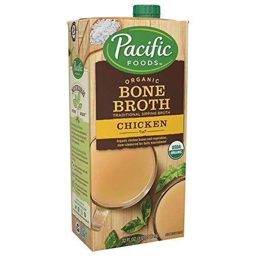 Experience layers of nourishing flavor with Pacific Foods Organic Chicken Bone Broth With Sea Salt. We slow-simmer organic chicken bones with vegetables, rosemary, apple cider vinegar and sea salt for a savory bone broth thats full of naturally occurring collagen. Sip a cup of warm chicken bone broth instead of coffee or tea for a delicious, satisfying addition to your everyday routine. It's great for refueling after workouts, beating the afternoon slump, or relaxing in the evening. Just pour, heat and enjoy! For an even better sipping experience, add a slice of lemon or some fresh rosemary. Our USDA-certified organic bone broth is made from non-GMO ingredients and free of gluten. It may also be suitable for paleo and keto diets. Each 1-cup serving of Pacific Foods Organic Chicken Bone Broth contains 9 grams of protein, 1 gram of carbs and 50 calories. One 32 oz recyclable carton contains roughly 4 servings. In addition to drinking it as a traditional sipping broth, you can use this bone broth in any recipe that calls for chicken broth, chicken stock or water. Try it as a soup base, to enhance gravies and sauces, or to cook veggies.