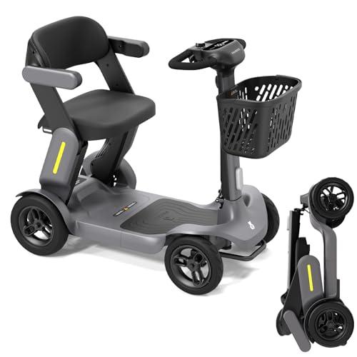 - 2-STEP FOLDING FOR TRUNK STORAGE: Designed for easy transport, our foldable mobility scooter boasts a fast folding mechanism for easy storage in a car trunk. It's lightweight at 70.5 lbs, yet remarkably durable.