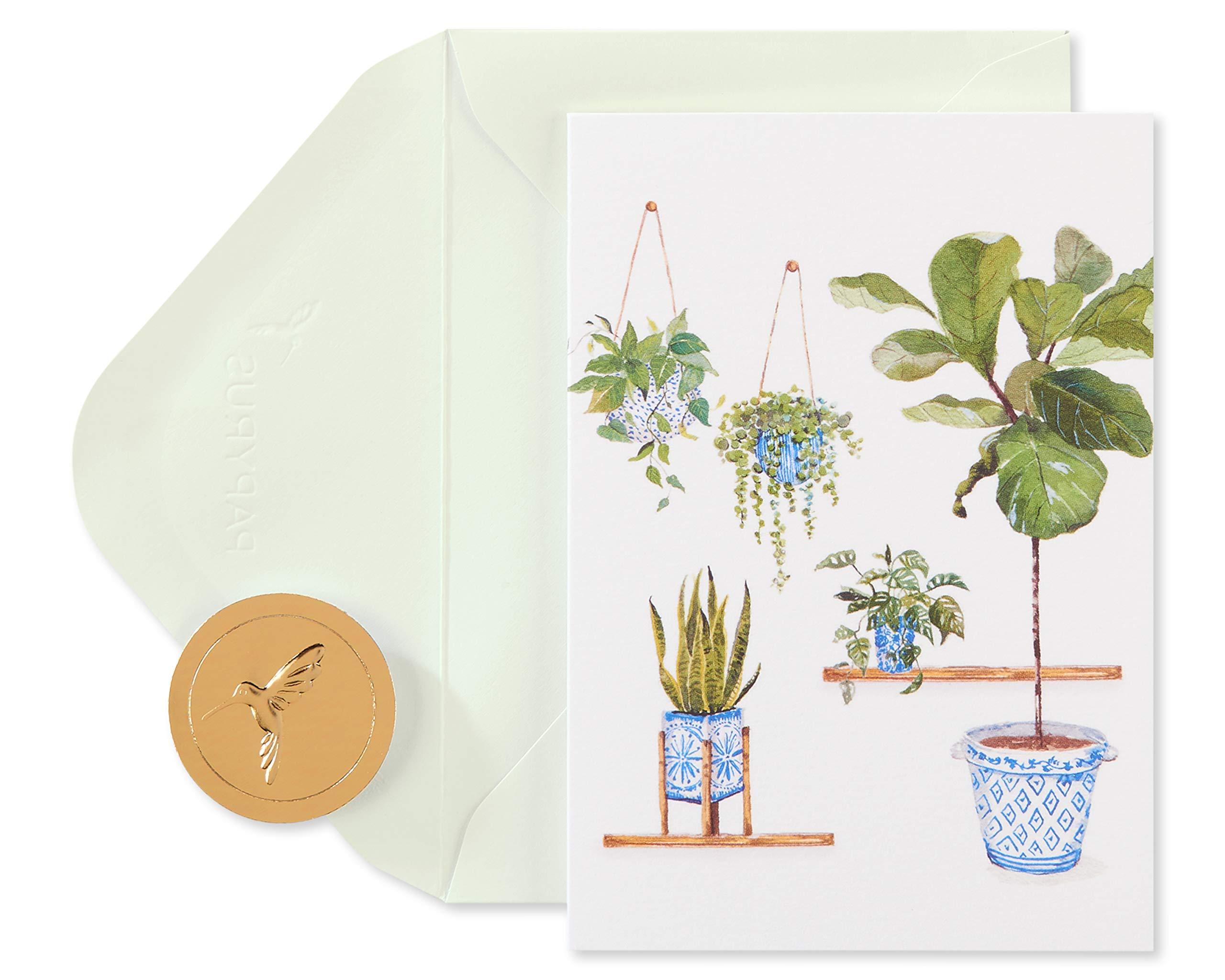 Using fine brushwork and decorative detailing, this illustration of a variety of hanging and potted plants makes the perfect set of stationery for any occasion. Airy and cheerful, this design will bring a bit of happiness to whoever receives it. Papyrus offers premium stationery, greetings cards, gift wrap, gift bags and entertaining products for everyday occasions and all holiday seasons--all with unique designs and quality embellishments.