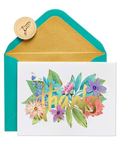 For moments of gratitude, youll be glad you have this gorgeous set of floral thank you cards from Papyrus! This set of 8 stationary cards includes a stunning multi-colored die-cut flower design with gem embellishments and gold foil lettering. They are premium quality and include coordinating teal envelopes with a gold foil interior, Papyrus gold hummingbird seals, and are blank inside so you can pen a personalized message. They are also great to have on hand as a response to kind gestures, gifts, support, graduations, holidays, parties, and showers!