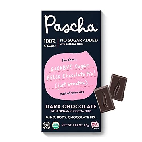 Pascha Organic Sugar Free Keto Dark Chocolate Bars (UTZ/Gluten Free & Non GMO/No Added Sugar), 100% Cacao With Cocoa Nibs, 28.2 Oz (Pack Of 10)
