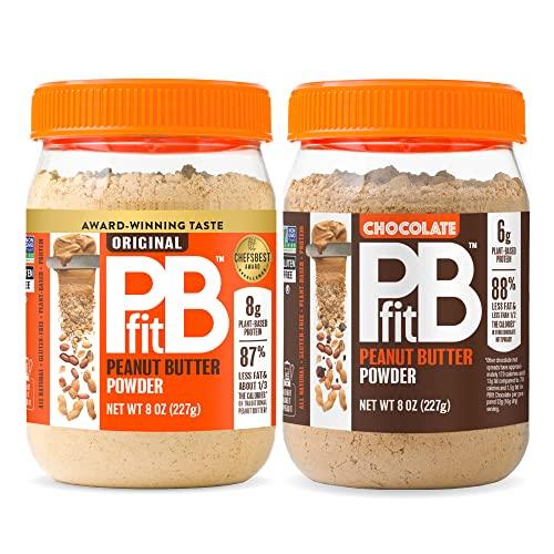 - All Natural Peanut Butter - PBfit Original Powdered Peanut Butter has 87% less fat and only 1/3 of the calories compared to regular peanut butter (when prepared as directed). PBfit Chocolate Powder Peanut Butter has 88% less fat and 1/2 the calories of other chocolate spreads
