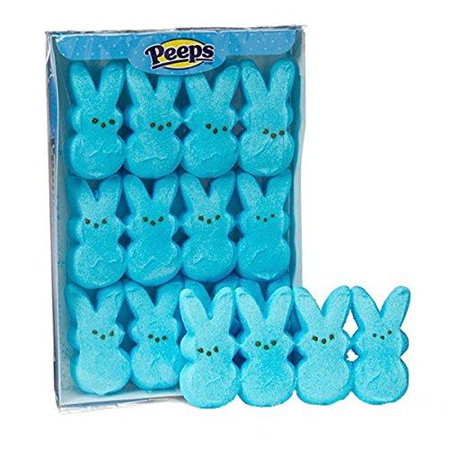 One 12 count package of blue Peeps marshmallow bunnies candy. Made in the U.S.A. by Just Born, Inc. Fresh - best if used by March of 2019.