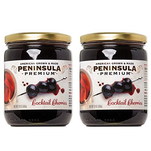 - SUCH VERSATILITY! Moving beyond Maraschino and Amarena, Expert Mixologists agree Peninsula Premium Cocktail Cherries' intensity and clarity are an essential component in Old Fashioneds, Manhattans and Whiskey Sours and provide a unique flair to Citrus Sours, Mocktails or Tiki punches. Peninsula Premium Cocktail Cherries are the perfect complement drizzled over Ice Cream or Gelato, or your favorite cakes or desserts. 10.5 oz size has about 30 cherries per jar, and the 20 oz size has about 60.