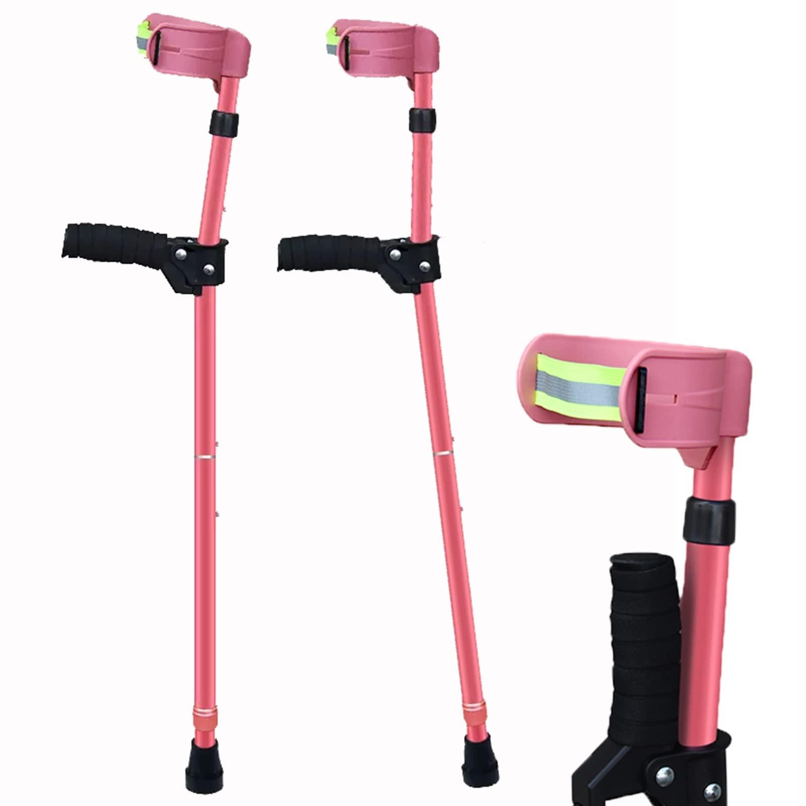 XYBI Store Pink Children's Folding Crutches, Adjustable Forearm Crutches, Medical Aluminum Elbow Crutches with Reflective Cuffs, Rehabilitation Care Crutches