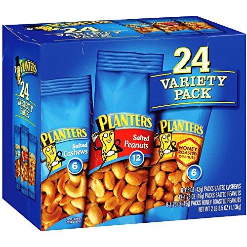 Planters Variety Pack 1.75 Oz Bags 24 Count: 6-Salted Cashews 6-Honey Roasted Peanuts 12-Salted Peanuts
