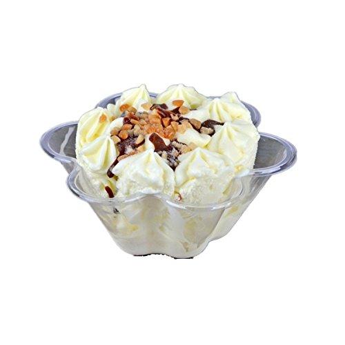 - Clear Plastic and Eye-catching Flower shape will showcase your Favorite Ice Cream,Finger Foods, Candies, Snacks, Desserts, Frozen Desserts, Frozen Yogurt, Cereal, Hot Soups, Yogurt, Cake, Pie,Fruit and Fruit Juice