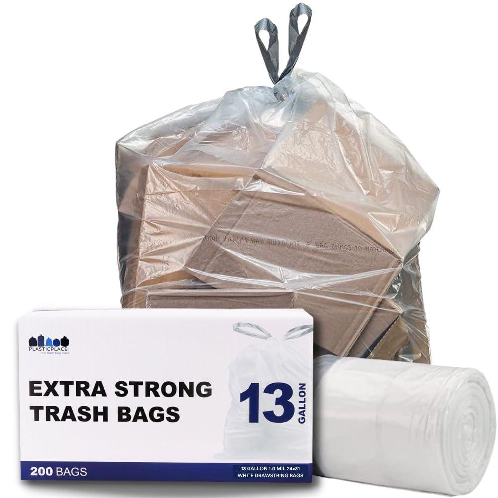 Plasticplace extra tall kitchen drawstring trash Bags | clear 13 Gallon 24"W x 31"H (200 count)