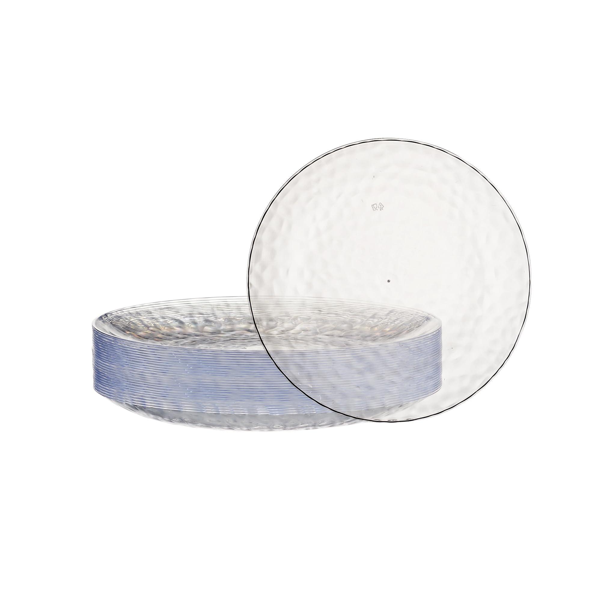 - Package includes 30 clear hard plastic plates with hammered design. Large pack of 30 plates is great for parties or stocking up your home.