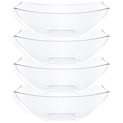 - Set of 4 Plastic Extra Large Square Clear Plastic Party, Sald, Snack, Serving Bowls,