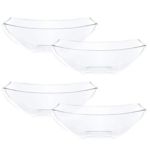 PLASTICPRO Disposable 32 ounce Square Serving Bowls, Party Snack or Salad Bowl, Medium, Plastic Crystal Clear Pack of 4
