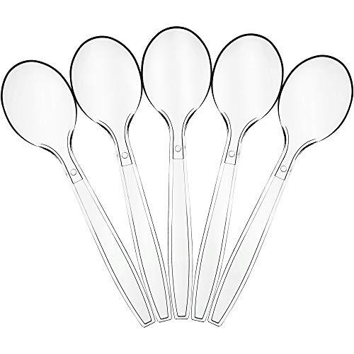 - Plasticpro 200 Pack Heavyweight Clear Plastic Soup Spoons- Great for everyday use or party, wedding, event, etc.