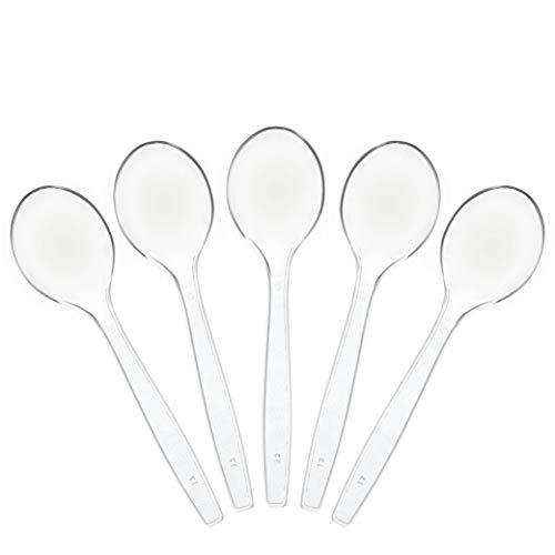 - Plasticpro 50 Pack Deluxe Heavyweight Clear Plastic Soup Spoons- Great for everyday use or party, wedding, event, etc.