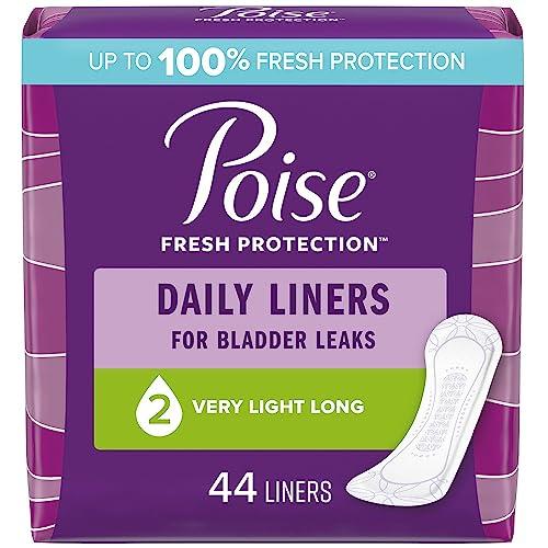 - NEW LOOK, same great protection: Poise Daily Incontinence Panty Liners, Very Light Absorbency, Long 44 panty liners; HSA/FSA-eligible in the U.S. (packaging may vary).