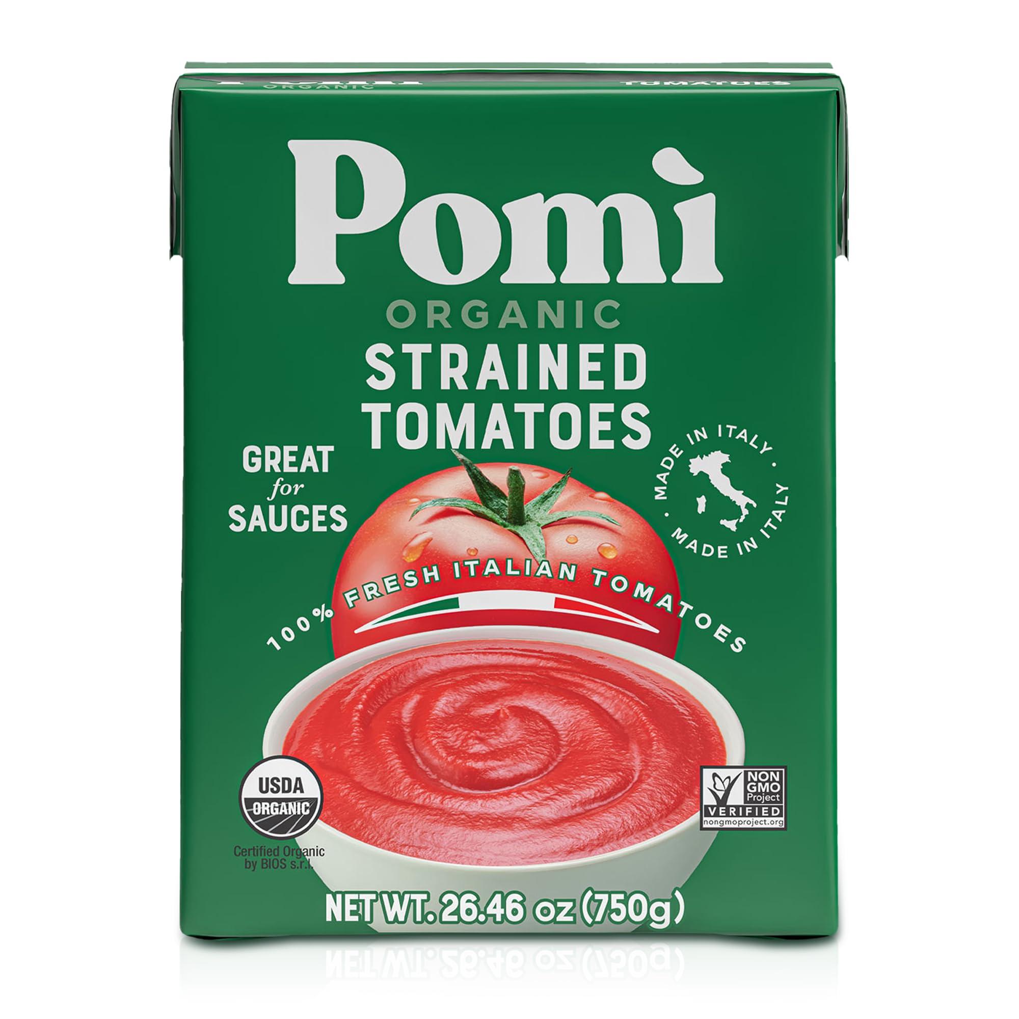Pom Organic Strained Tomatoes - Creamy, Velvety Puree - 100% Fresh Italian Tomatoes, Made in Italy - No additives, Kosher, Non-GMO, USDA Certified Organic - 26.46oz BPA-Free Carton (Pack of 12)