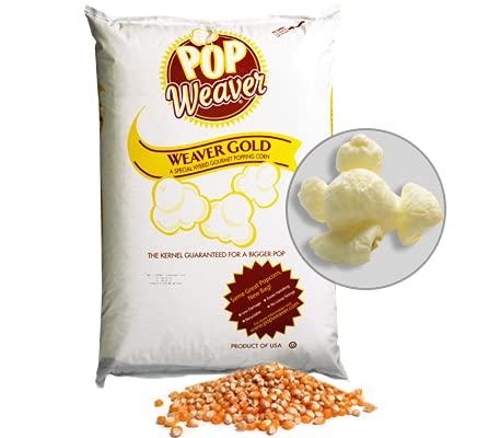 Pop Weaver Popcorn Kernels - Weaver Gold 50-lb Bag - Butterfly Style Popping Corn Delight your taste-buds with the flavorful taste of Pop Weaver Popping Kernels Popcorn. Pop Weaver's popcorn is made with fresh kernels. Pop Weaver is an excellent choice for family occasions and parties, but also casual snacking and much more. Make movie nights even more fun with Pop Weaver Popping Kernels. Excellent for movie nights, game days, children's parties and other at-home occasions.