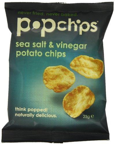 Sea salt & vinegar popped potato chips The tangiest pairing of flavours since, well, ever never fried. Never baked. Popchips are popped! Our chips have all the flavour but less than half the fat of regular fried crisps*. Plus less than 100 calories per bag! Lately all this low-fat health talk has been taking the fun right out of snacking, not to mention the flavour. So we found a way to put it back into a naturally delicious chip like you've never tasted before. We don't fry it (unhealthy). We don't bake it (undelicious). We start with the finest potatoes, add a little heat and pressure, and pop! It's a chip. Then we add all-natural seasoning for a snack so tasty you won't even notice it's (we hesitate to say) healthier. Hungry for more? Pop over to: popchips.co.uk * 50+% less fat per 23g serving