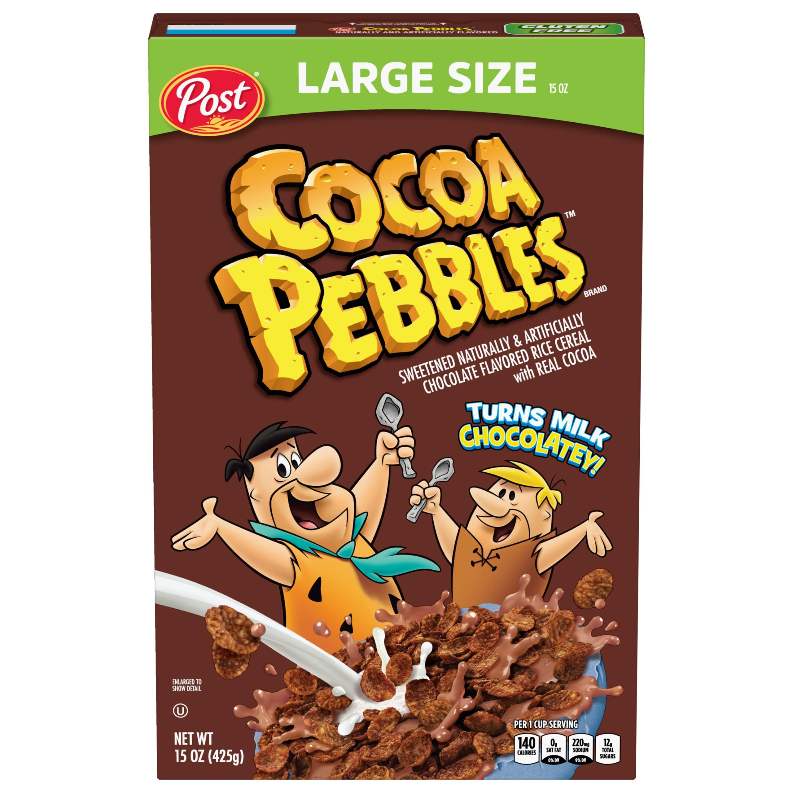 - Enjoy Post Cocoa PEBBLES family size cereal as a crispy afternoon snack or in a classic bowl with milk to start your morning