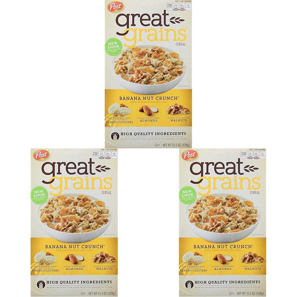 Great Grains Banana Nut Crunch is a crunchy, flaky cereal with added walnuts, almonds, and dried bananas to balance the delicious, wholesome flavor. Made with high quality ingredients, no high fructose corn syrup, artificial flavors or colors, its the perfect way to start your day. *at least 48g recommended daily
