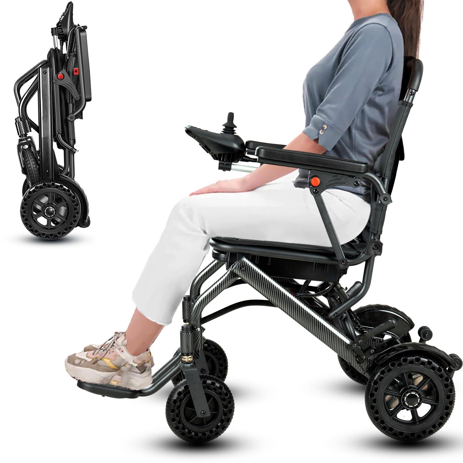 - Lightweight: This portable and lightweight foldable electric wheelchair folds in less than 3 seconds. It is ultra-light- only 15 inches tall when folded and fits in the trunk of practically any car. This foldable electric wheelchair has a weight capacity of 220 lbs. With the high capacity 10AH battery, it weighs only 36 lbs(including battery)