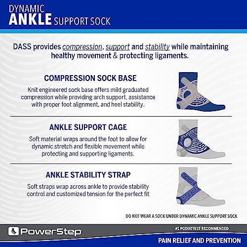 - SUPPORT & PROTECTION: The PowerStep Dynamic Ankle Support Sock provides compression, support, and stability all in one to help protect you against ankle sprains, eversion and inversion injuries, and helps aid in healing by preventing reinjury.