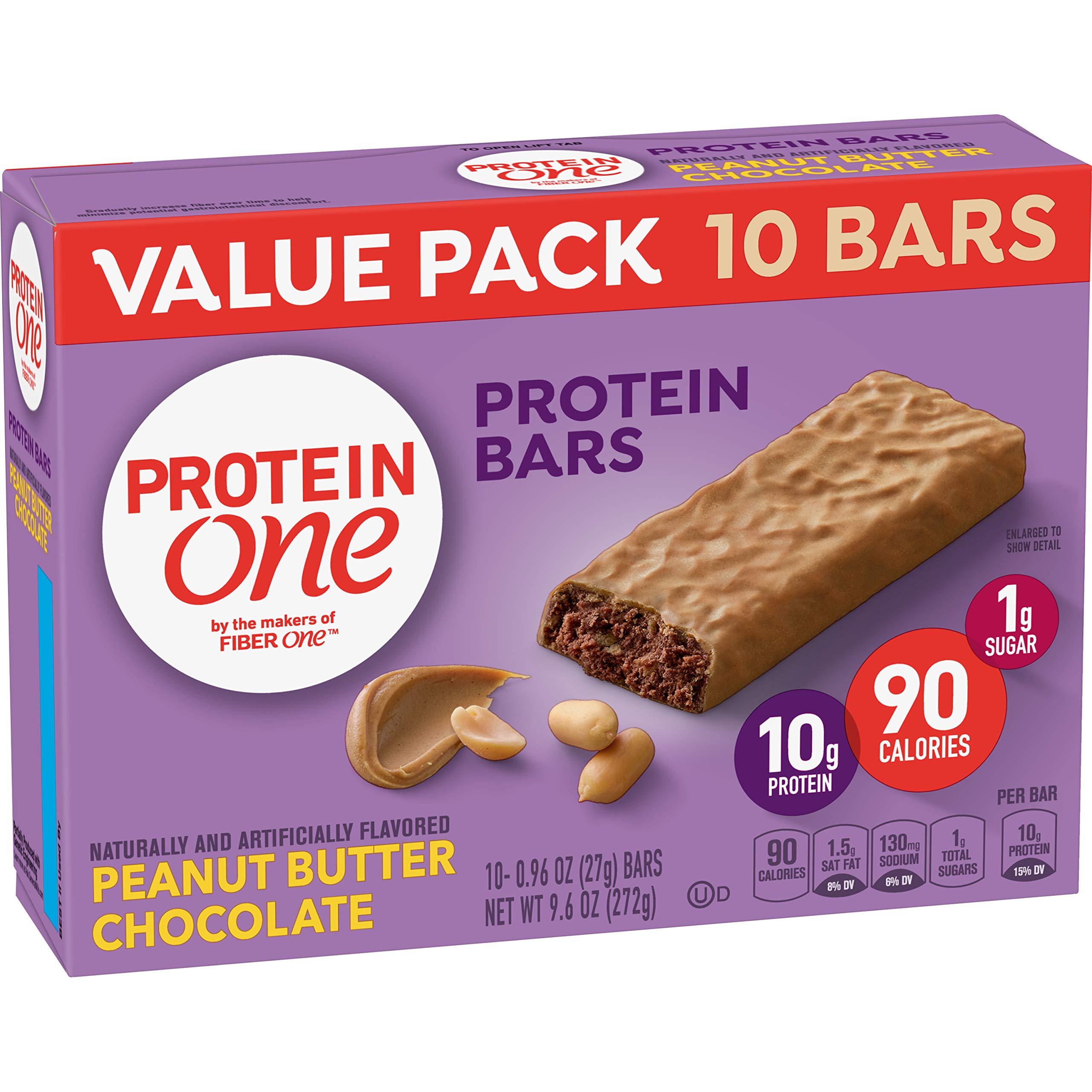 Protein One 90 Calorie Peanut Butter Chocolate Bars are a delicious snack for 90 calories; with 10 grams of protein and 1 gram of sugar.