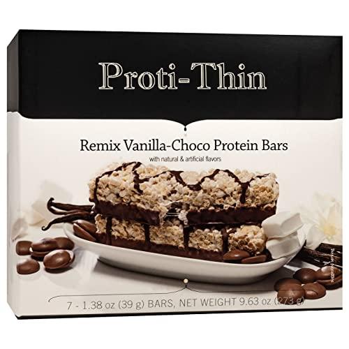 You can't go wrong with mixing chocolate and vanilla! Proti-Thin Vanilla Chocolate Protein Bars have a delicious, crispy vanilla center with rich chocolate top drizzle and bottom coating. Use these bars as a satisfying snack or even a quick meal replacement for breakfast or lunch. You cant go wrong with 15 grams of protein and 8 grams of filling fiber for only 130 calories and 2 grams of sugar.