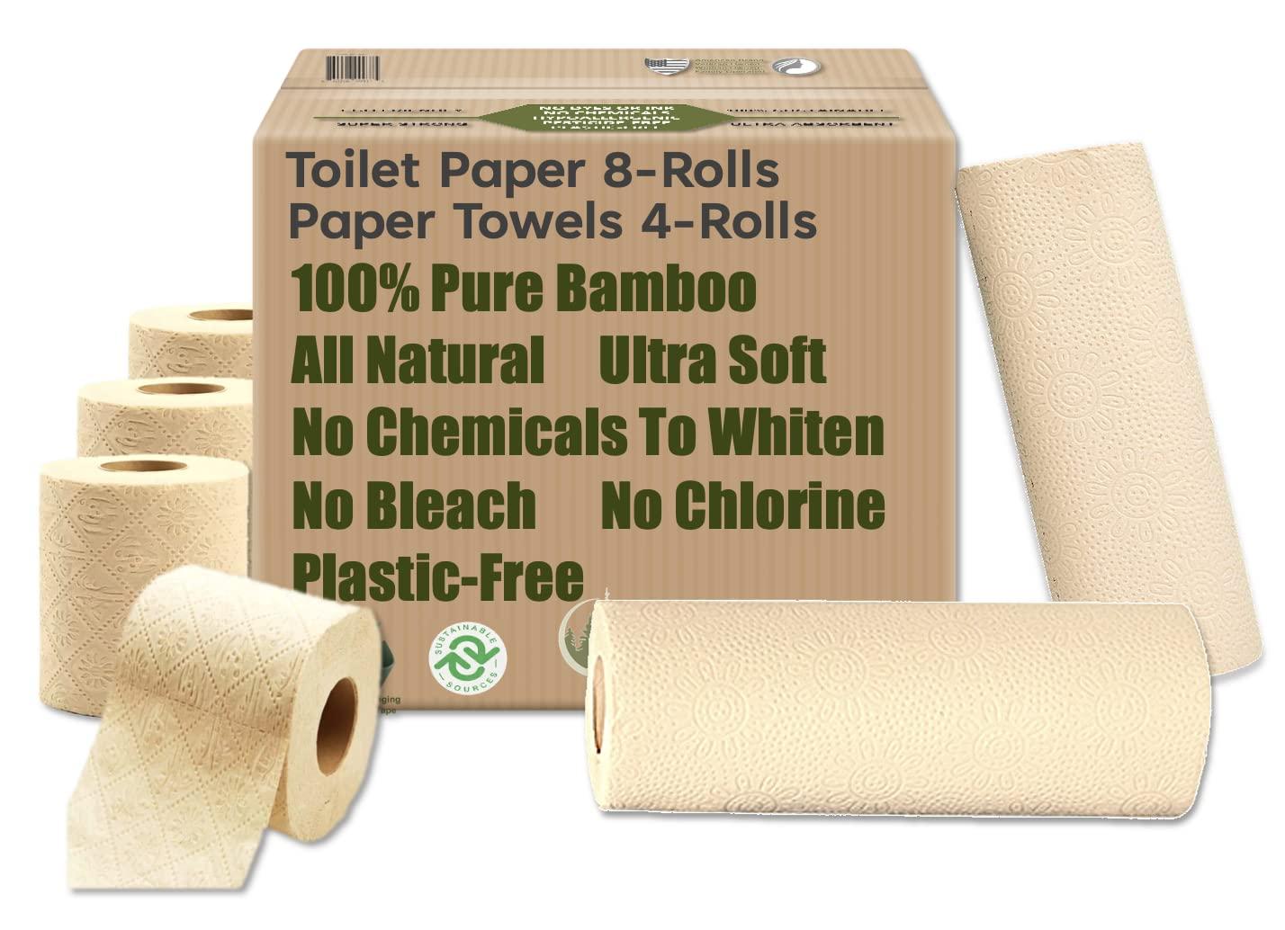 This value pack contains 2 Paper Towel Rolls and 4 Large Toilet Paper Rolls, providing you with a long-lasting supply of paper towels and toilet paper. And best of all, you can feel good about your purchase, knowing that our bamboo toilet paper and paper towels are tree-free and sustainable.