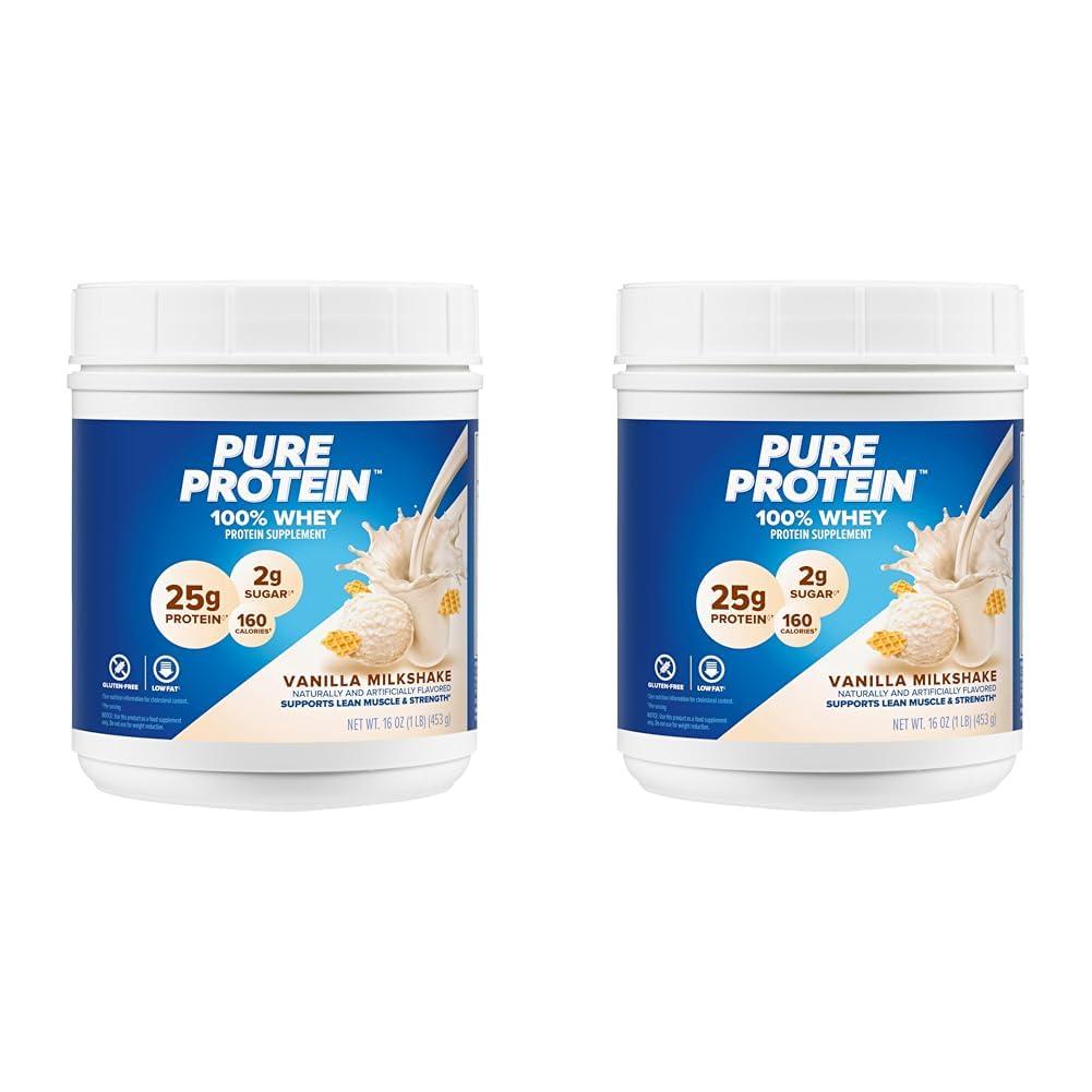 pure protein Powder - Whey, High Protein, Low Sugar, Gluten-Free, Vanilla Cream Flavor - 1 lb (Packaging May Vary) (Pack of 2)