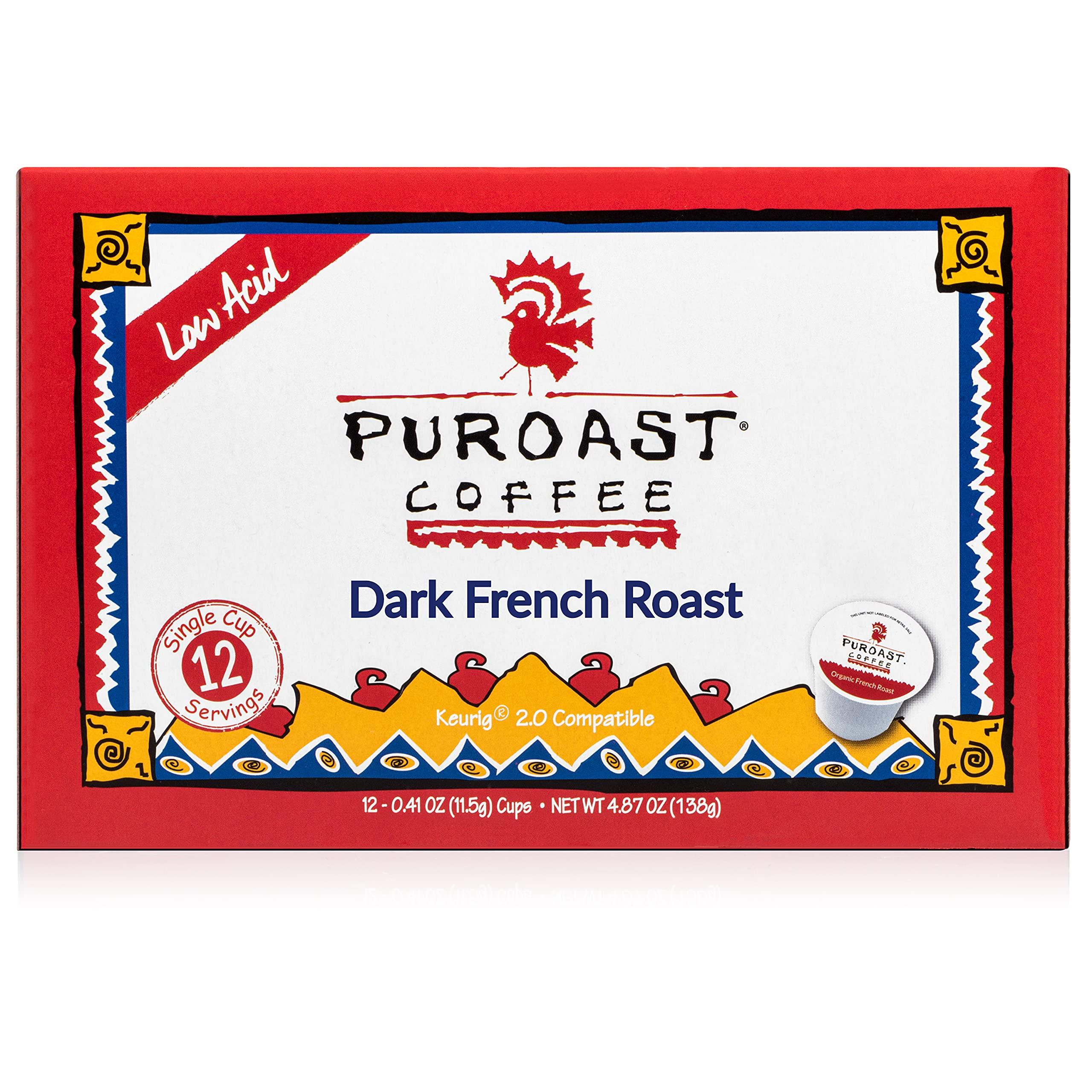 Puroast Low Acid Coffee Single-Serve Pods, French Roast, Compatible with Keurig Brewers, 12 Count