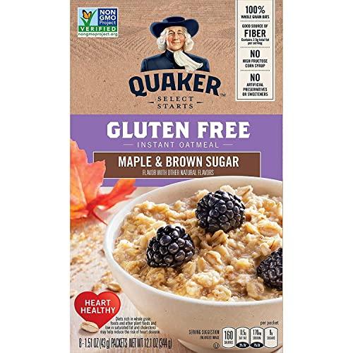 Quaker Select Starts Gluten Free Instant Oatmeal, Maple and Brown Sugar, 12.1 oz Box - 8-1.51 oz Packets