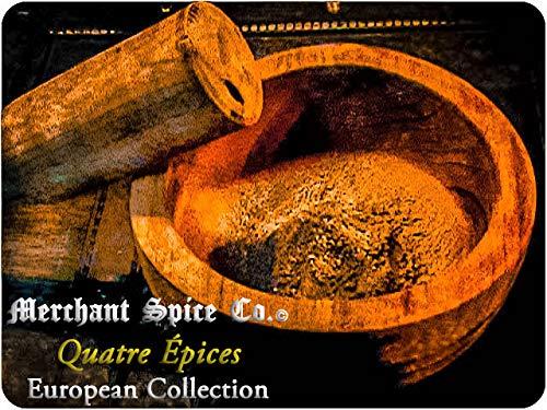 This spicy fusion of peppercorns and spices from France (literally meaning four spices) will add a lively and peppery bite to your food. Marvelous for dry-rubbed and marinated seafood and meats, as well as all grilled foods. Or sprinkle some on your meals fresh at the table. Ingredients: Ginger, black pepper, nutmeg and white pepper