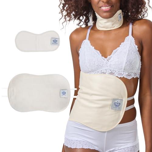 QUEEN OF THE THRONES Castor Oil Pack Bundle- Includes Original Castor Oil and Neck. Naturopathic Doctor Designed, Less Mess, Reusable, Comfort Fit, Organic Cotton Flannel & Soft Straps.