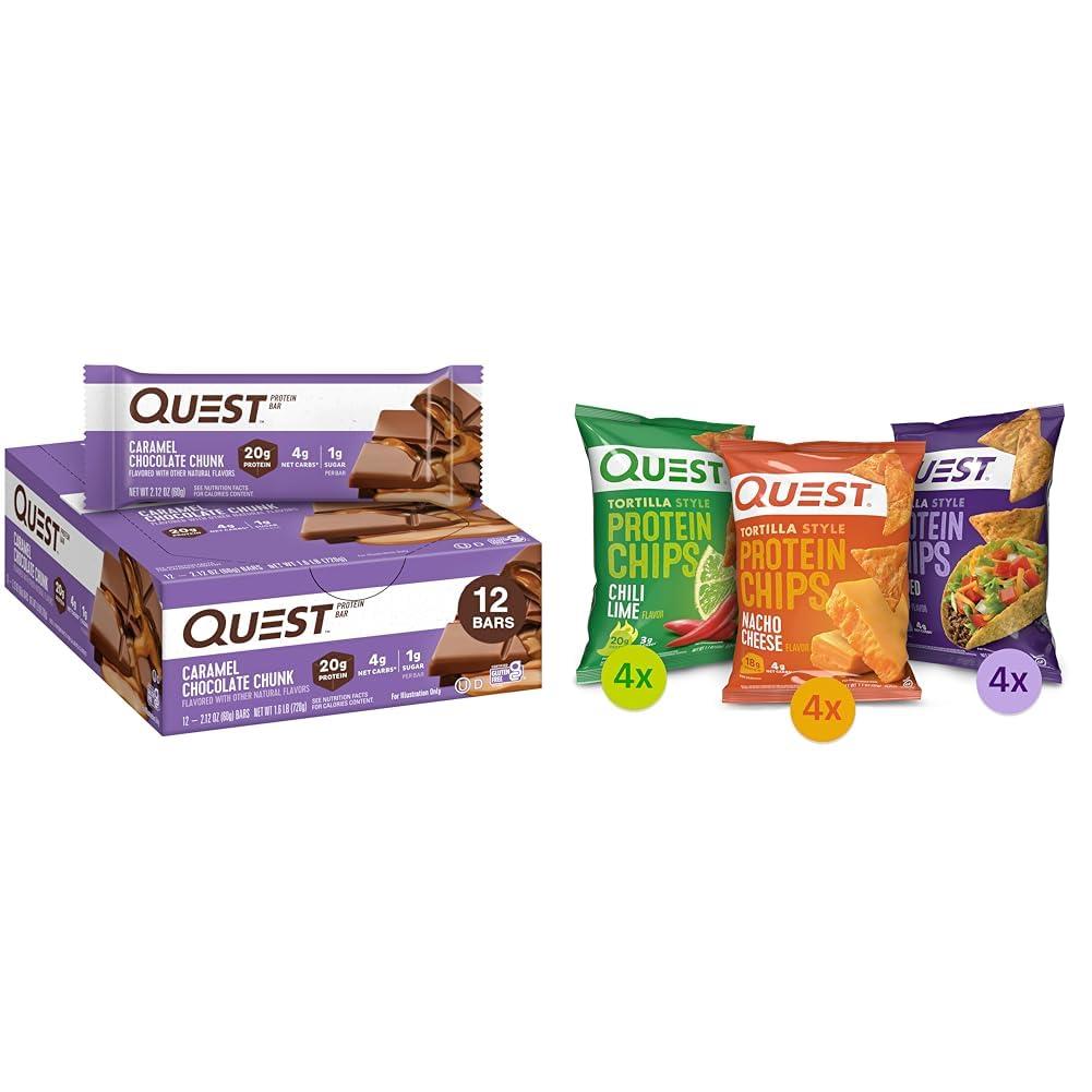 - Product 1: UNWRAP COMPLETE PROTEINS: Quest Caramel Chocolate Chunk Protein Bars are made with complete, dairy-based proteins to provide your body with 9 essential amino acids