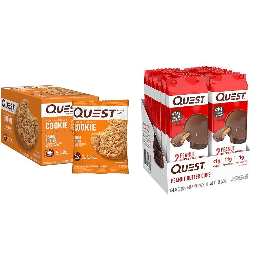 - Product 1: YOU DESERVE A COOKIE: The Quest Peanut Butter Protein Cookies provide you with a sweet, soft & chewy cookie with 15g protein, 5g net carbs, and 1g of sugar