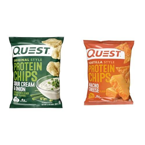 - Product 1: ENJOY MORE. CARB LESS: The Quest Sour Cream & Onion Original Style Protein Chips provide all the crunch and satisfying taste of a regular chip. Only ours have 19g of protein and 4g net carbs per bag.