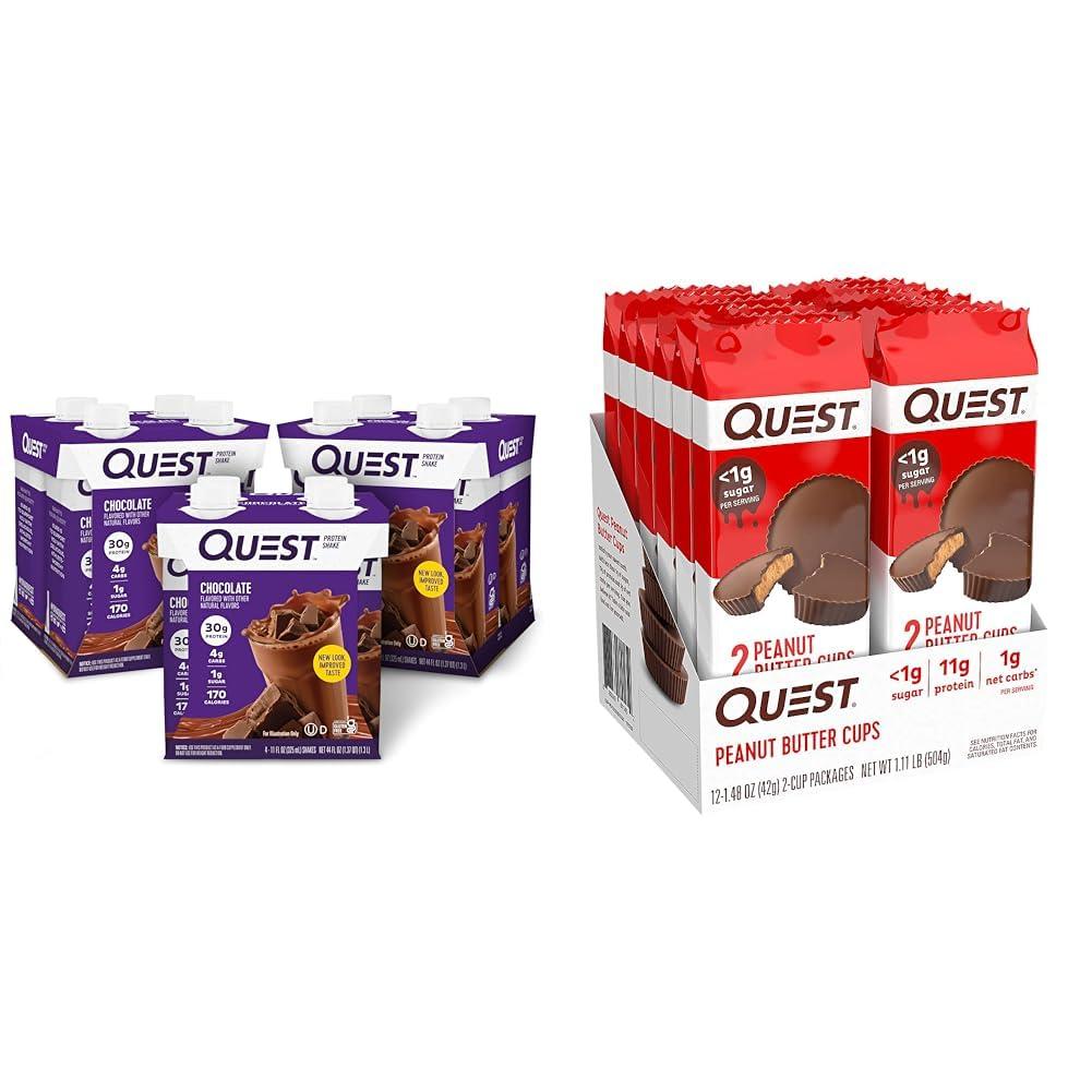- Product 1: SIMPLY MADE WITH 11 INGREDIENTS: The Quest Chocolate Protein Shake is a creamy chocolate shake you can enjoy any time with 30g of protein, 4g carbs and 1g of sugar per shake