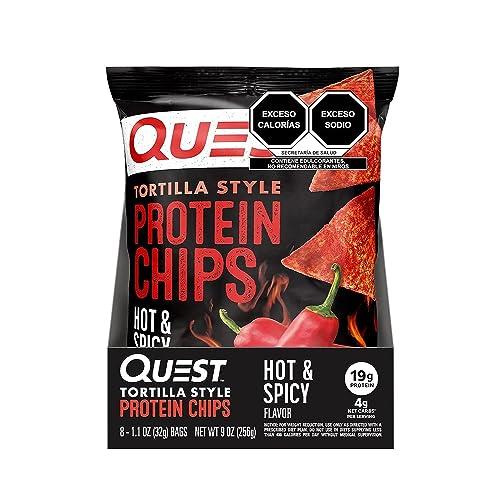- Have more fun. LOWER CARBOHYDRATES: Quest's protein tortilla chips provide the crunchy and satisfying taste of regular tortilla chips. It features 19-20 grams of protein and 3-4 grams of net carbohydrates per meal*