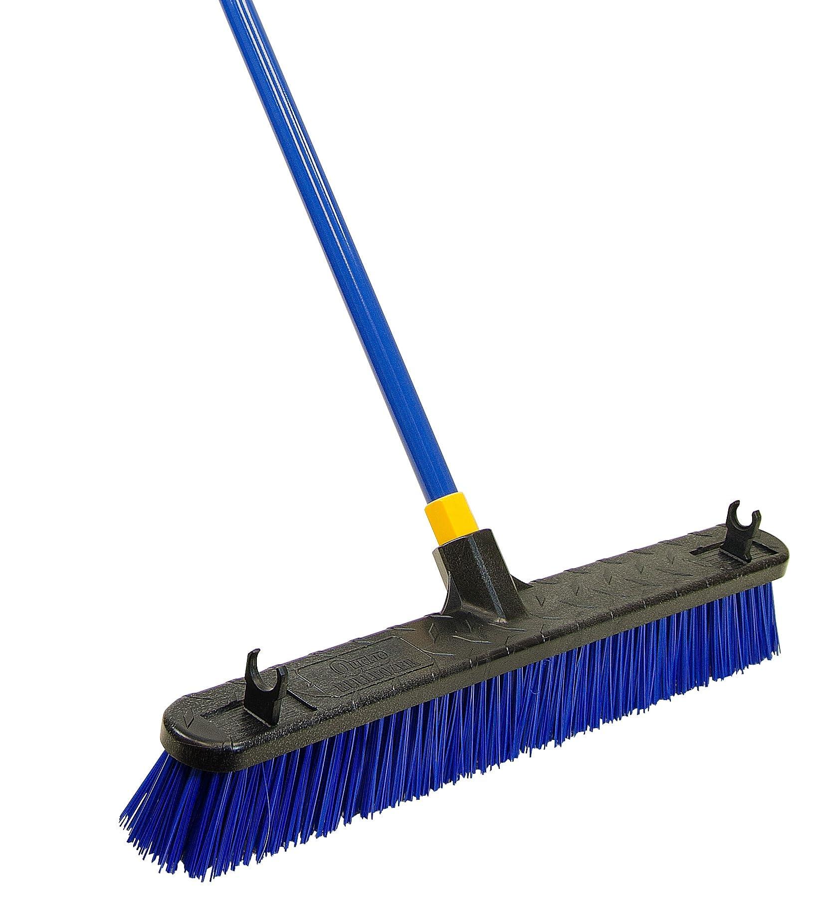 The Quickie Bulldozer Push Broom comes with a 24-inch resin block that wont warp, rot or crack. The block features extra stiff poly fibers for the toughest clean-up jobs. Designed for clearing gravel, sticks, leaves and wood chips, this broom is made for use on rough, uneven surfaces. The broom block and head are supported by a 60-inch powder coated steel handle that comes equipped with a swivel hang-up feature for easy storage. Sweeps medium to rough surfaces. The Quickie Push Broom comes with a 5-year limited warranty. Quickie designs, manufactures and distributes over 300 cleaning products for traditional in-home use as well as contractor and DIY grade applications. The product line includes mops, brooms, dusters, dustpans, brushes, buckets and other supplies.